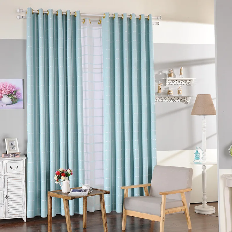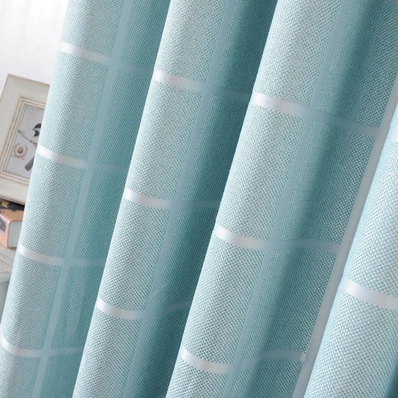 Home Modern Blue Plaid Jacquard Thicken Blackout Curtains Cloth Window Curtain For Living Room Bedr