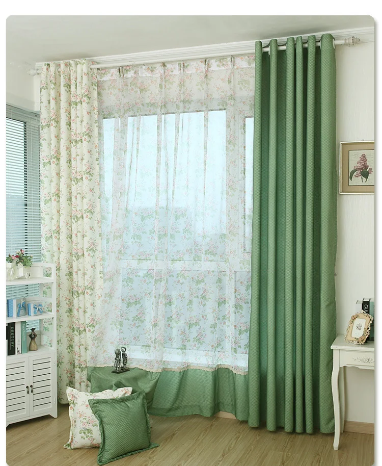 Best Korean garden custom finished curtains bedroom curtains warm floral green dots