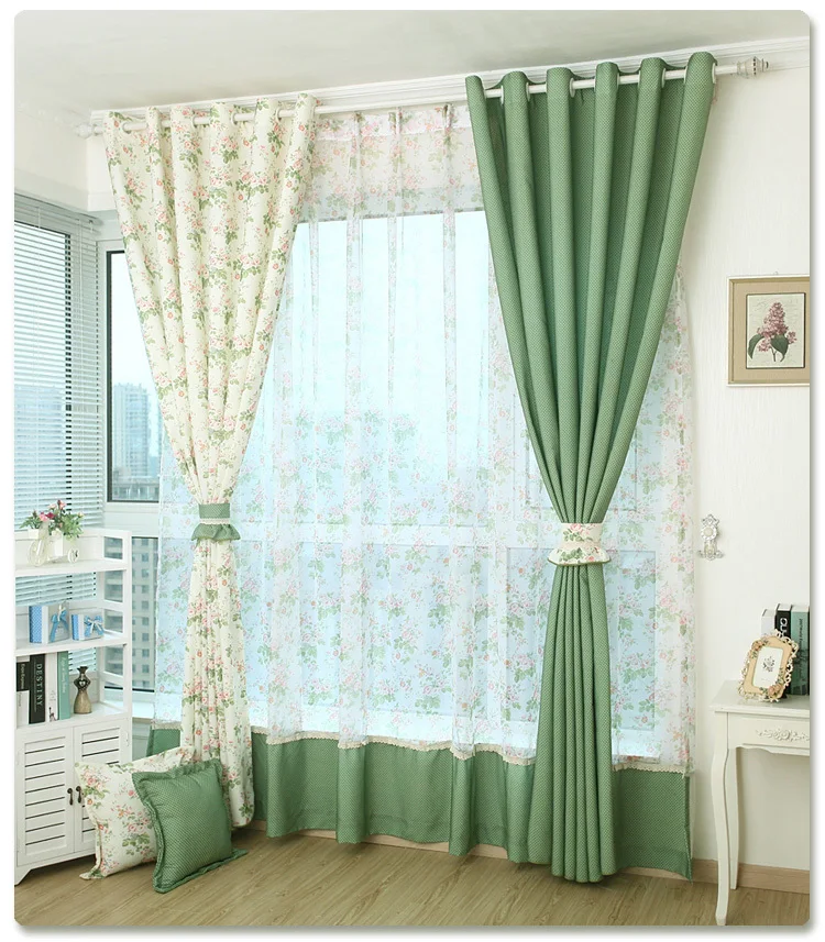Korean garden custom finished curtains bedroom curtains warm floral green dots