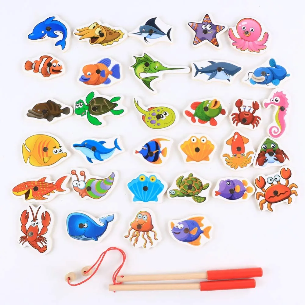 BEST Magnets Fishing Games juguetes Montessori Toys Wooden Toy Sensorial Montessori Materials Magnetic O