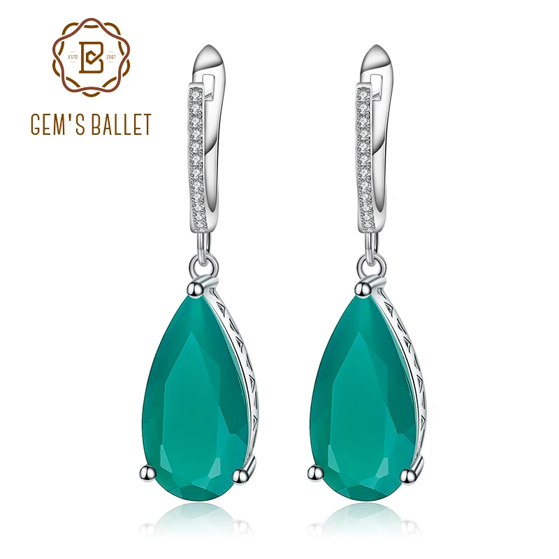 Hot Sale Gem's Ballet 15.79Ct Natural Green Agate Gemstone Drop Earrings 925 Sterling Silver Vintage Earring